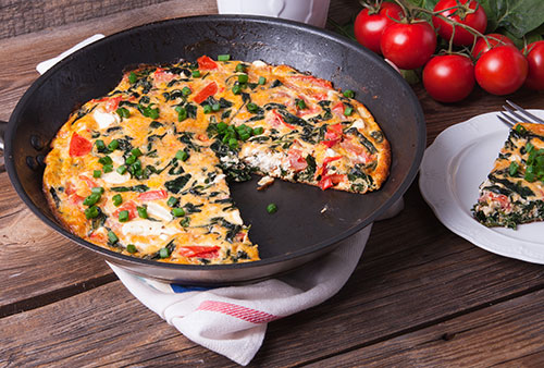 5. Mélanger les légumes cuits avec les œufs mousseux et mettre le mélange dans un plat à four.