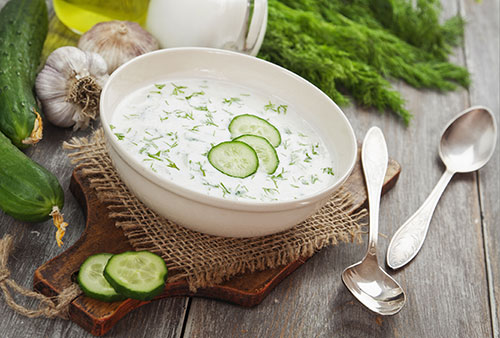 Soupe froide aux concombres et aux herbes fraîches